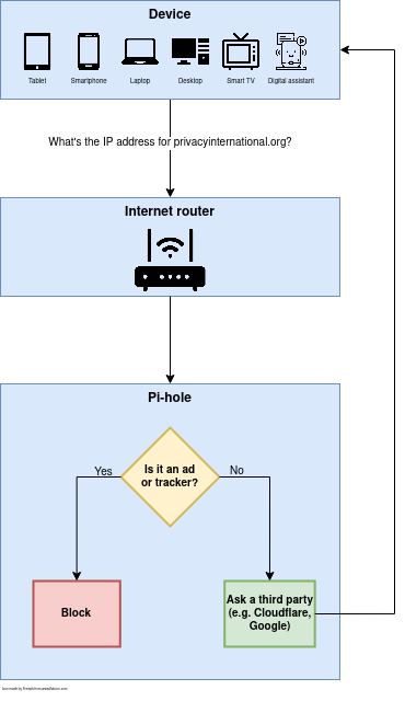 Pi-hole es un bloqueador de anuncios de uso general que cubre toda la red y la protege de los anuncios y los rastreadores sin que sea necesario configurar cada uno de los dispositivos. Tiene la capacidad de bloquear anuncios en cualquier dispositivo de la red (por ejemplo, electrodomésticos inteligentes) y, a diferencia de las extensiones del navegador, Pi-hole bloquea los anuncios en cualquier tipo de software.
