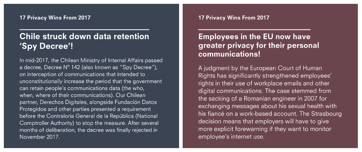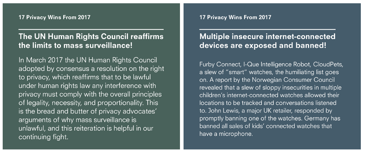 To celebrate the hard work of privacy advocates around the world, we highlight 17 #PrivacyWins from 2017!