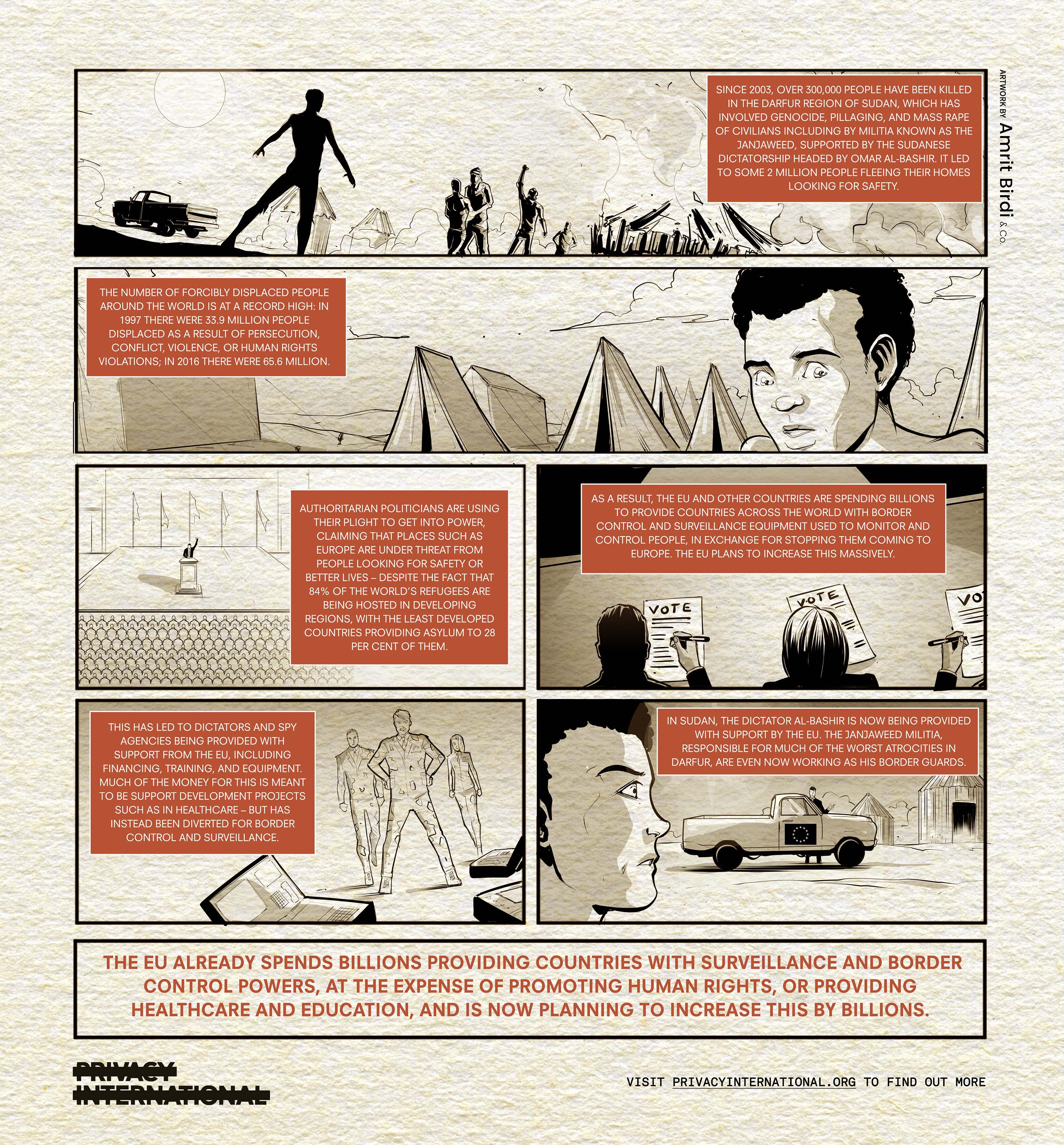 - The EU and individual European countries are already spending billions developing border control and surveillance capabilities in foreign countries, largely to ensure they to deter migration to Europe. For example, the EU is supporting Sudan's leader with tens of millions of Euros aimed at capacity building for border management. The EU is now looking to massively increase its expenditure aimed at building border control and surveillance capabilities globally under the forthcoming Multiannual Financing Framework, which will determine its budget for 2021-2027. Other EU projects include developing the surveillance capabilities of security agencies in Tunisia, Burkina Faso, Somalia and Iraq and elsewhere. European countries such as France, Germany, and the UK are sponsoring surveillance worldwide, for example, providing training and equipment to "Cyber Police Officers" in Ukraine, as well as to agencies in Saudi Arabia, and across Africa.