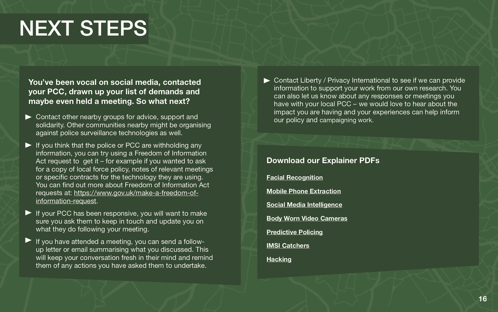 You can download our new campaign pack (pdf link at the bottom of the page) to learn more about the police surveillance technology that might already be being used in your local area, and find out what you can do to get your police force to be more accountable to you and your community.