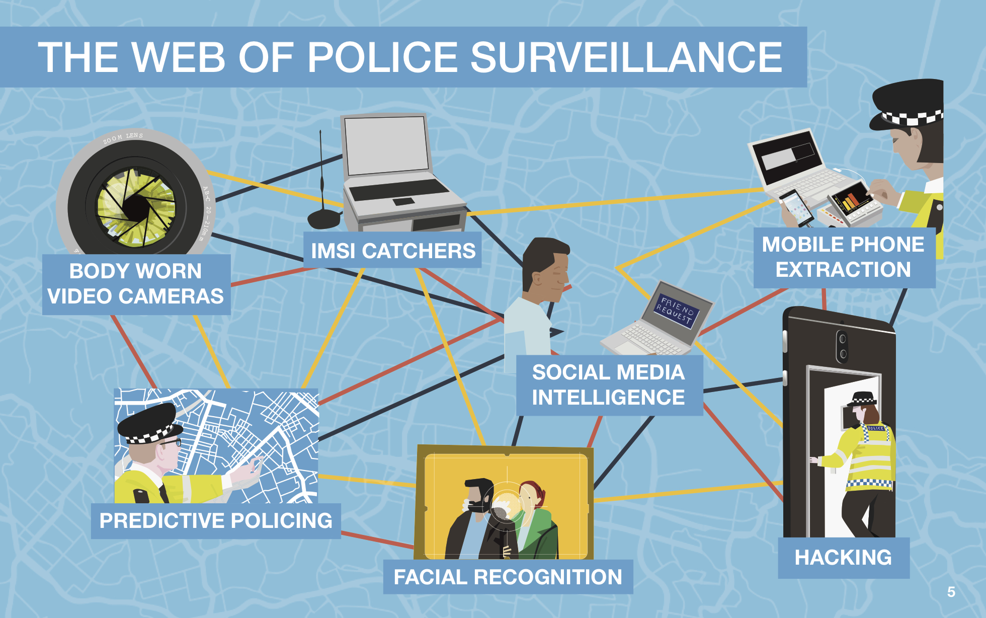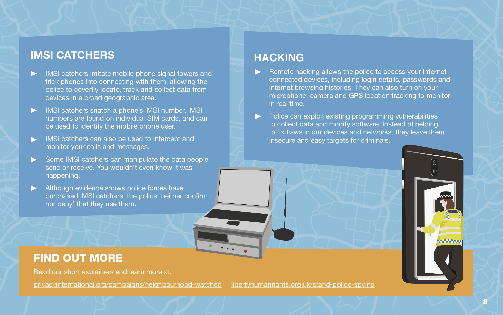 From facial recognition to social media monitoring, from remote hacking to the use of mobile surveillance equipment called 'IMSI catchers', UK police forces are using an ever-expanding array of surveillance tools to spy on us as we go about our everyday lives. Too often, these new and intrusive spying technologies are rolled out without the say, or even the knowledge, of the public or their locally elected representatives.