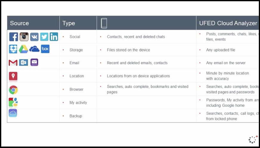 As we spend more time using social media, messaging apps, store files with the likes of Dropbox and Google Drive, as our phones become more secure, locked devices harder to crack, and file-based encryption becomes more widespread, cloud extraction is, as a prominent industry player says, “arguably the future of mobile forensics.”