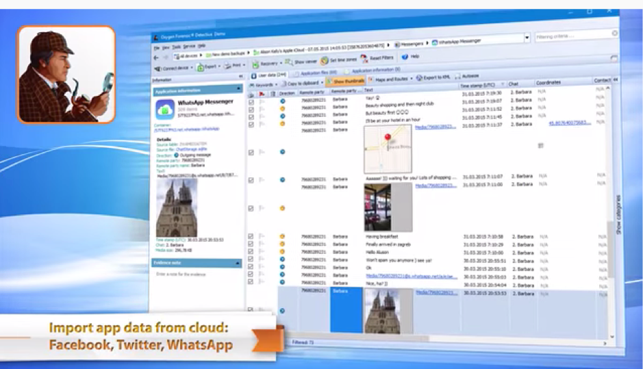 Oxygen Forensics, who developed Oxygen Forensics Detective forensic analysis tool, have built-in Oxygen Forensic Cloud Extractor to acquire “data from the most popular cloud services” including WhatsApp, iCloud, Google, Microsoft, Mi Cloud, Huawei, Samsung, E-Mail (IMAP) Servers and more. “Also various social media services are supported to include but limited to: Facebook, Twitter, Instagram, and many more.” It “...supports, at the time of writing, 54 different types of cloud services, ranging from file storage, to messengers, drones, health apps, and social media.”