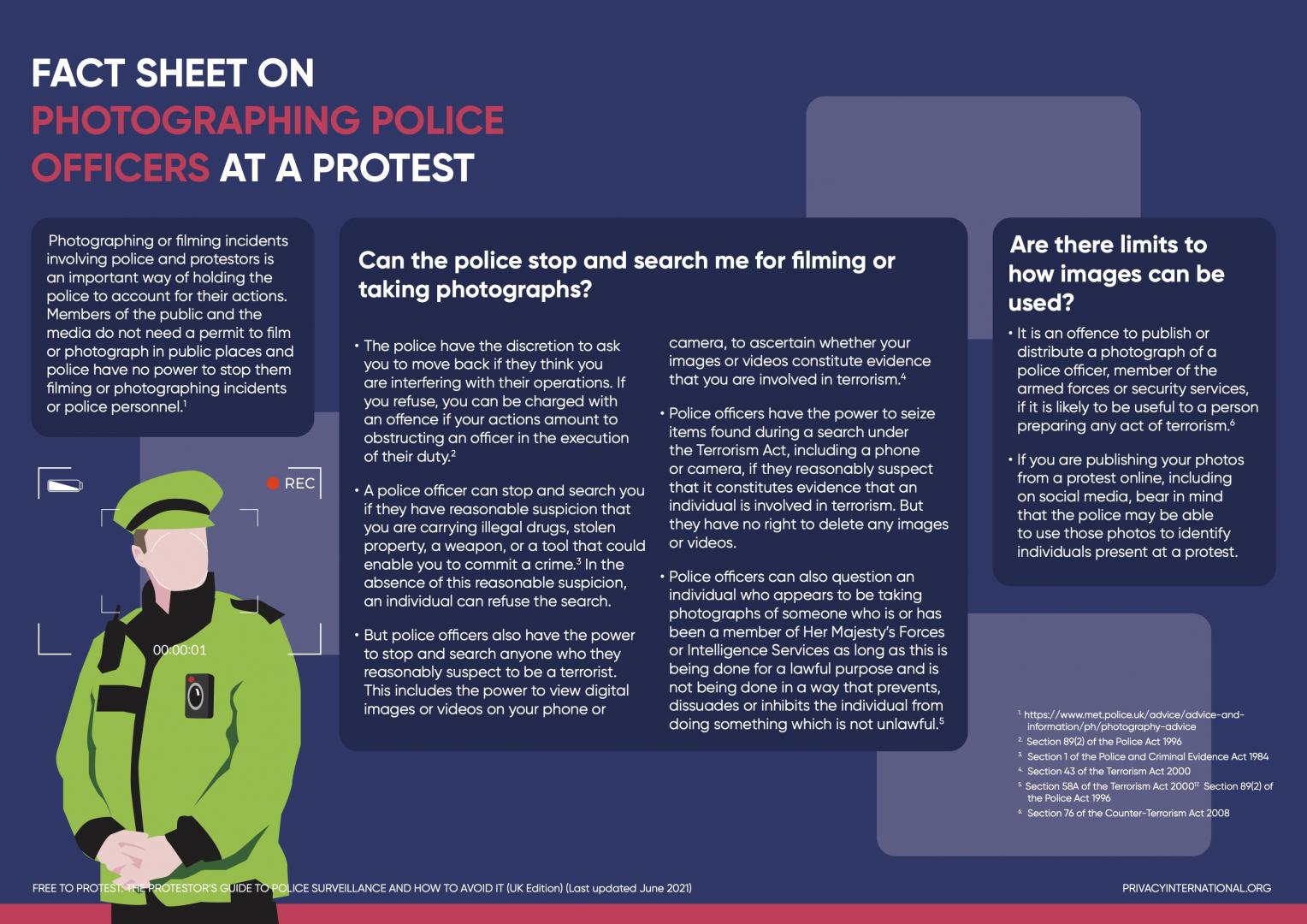 - If you are publishing your photos from a protest online, including on social media, bear in mind that the police may be able to use those photos to identify individuals present at a protest.