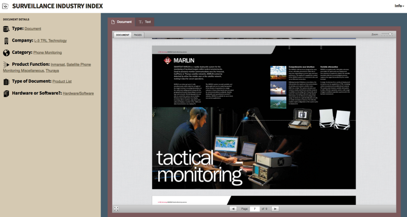 For many years, Privacy International attended trade shows where surveillance companies gathered to advertise their equipment to government representatives. At these trade shows, Privacy International covertly collected surveillance company brochures which contained detailed information of surveillance products. Online, these companies prefer to keep quiet and anonymous, with websites that are often opaque labyrinths of marketing buzzwords lacking useful information. Collecting the brochures was important in order to set a benchmark, and increase public understanding about the breadth of the industry.