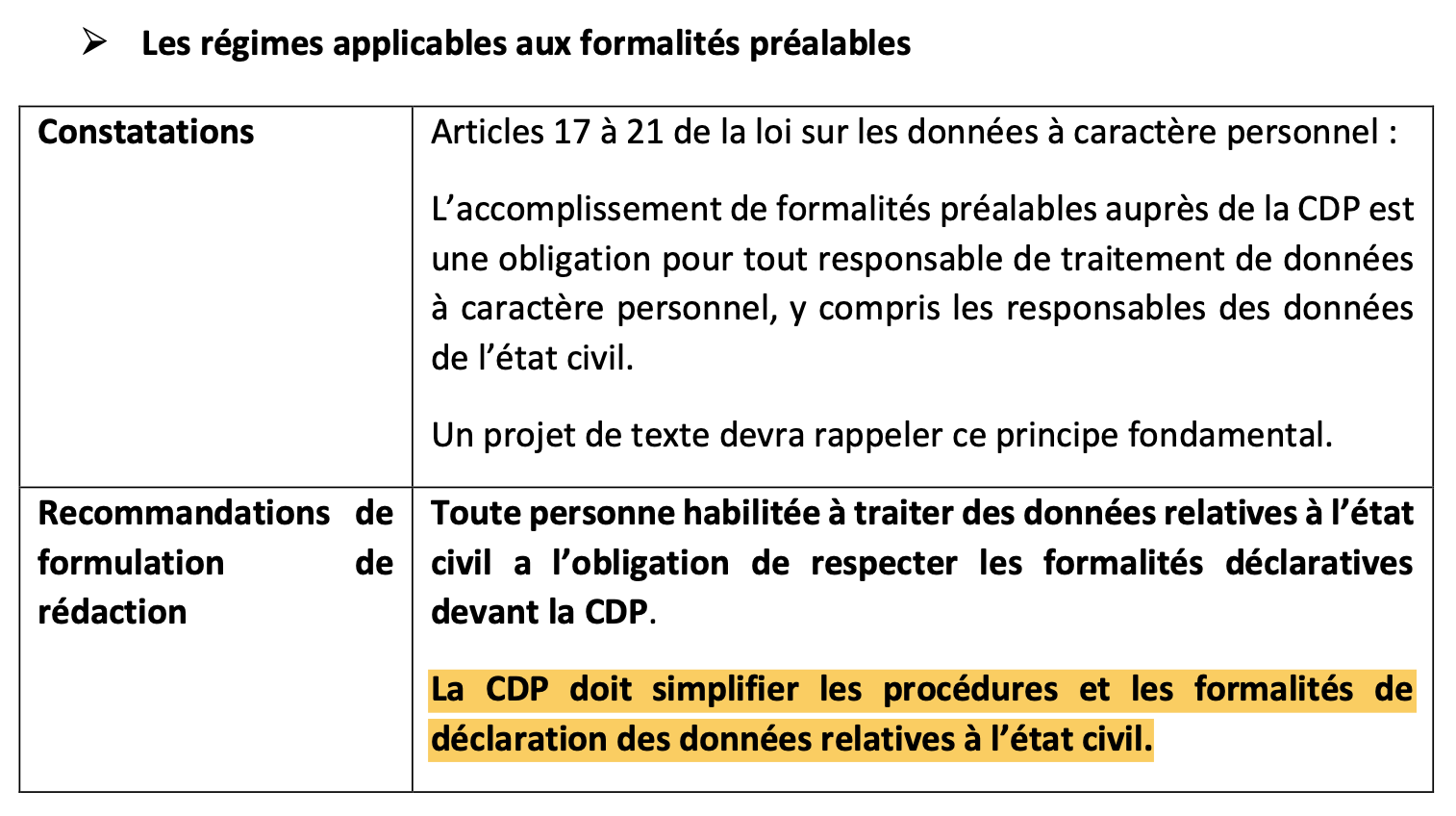 Instead of promoting stronger protections however, on the contrary, the study asks for the procedures and formalities regarding the obligations of those responsible for processing personal data to be simplified (Doc 7.7).