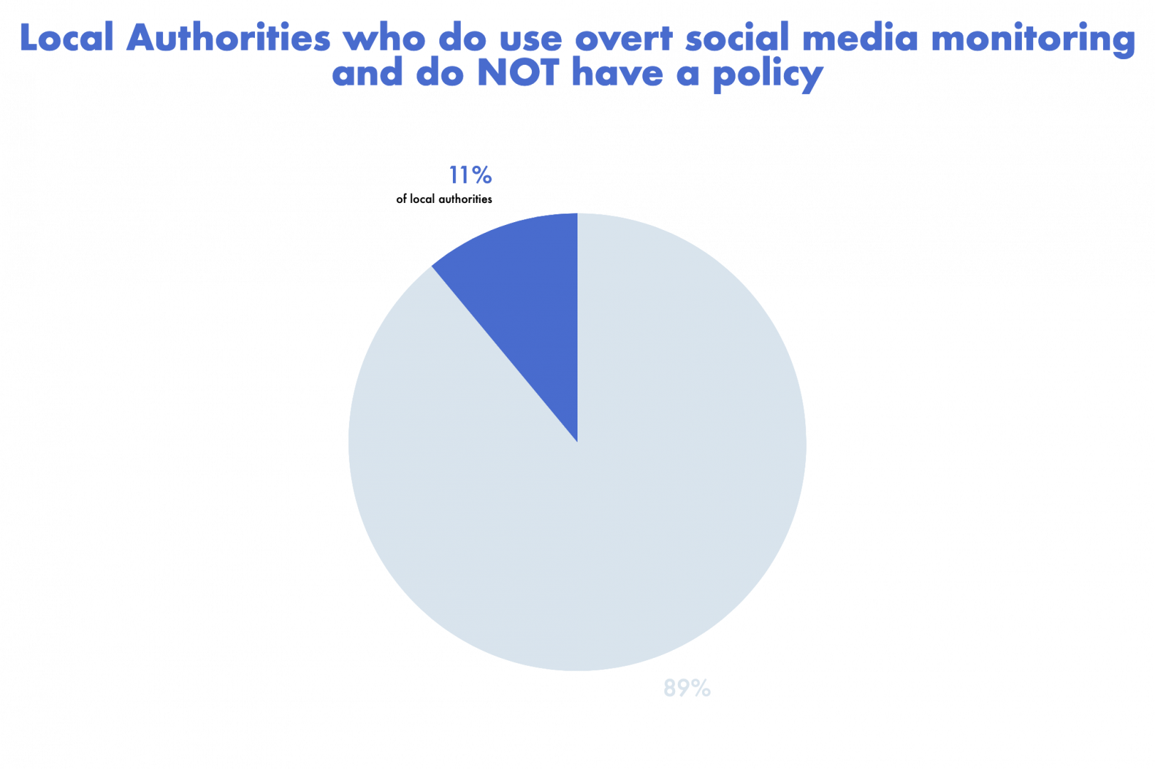 This informed key finding: A significant number of local authorities are now using 'overt' social media monitoring and this substantially out-paces the use of 'covert' social media monitoring.