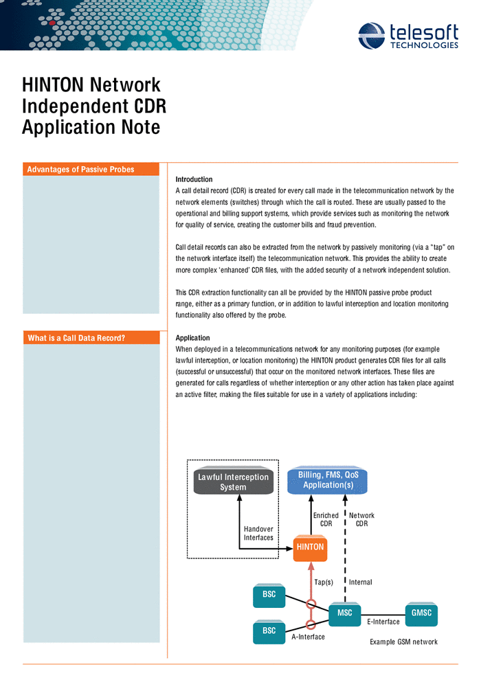 It must be remembered that Off-the-Air interception is not the only form of interception from mobile phones. Access can also be achieved through physical probes placed on mobile networks. This involves moving further into the mobile network, past the wireless base stations and into the Mobile Switching Centres that operate and host information on groups of base stations. The information that can be collected in addition to call content is referred to as Call Data Records (CDR), the metadata of telephone calls which- as with metadata gathered via internet monitoring- holds much information that allows for the identification and tracking of targets.