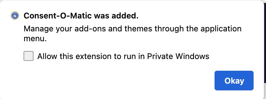 Install an automatic consent pop-up filler on Firefox