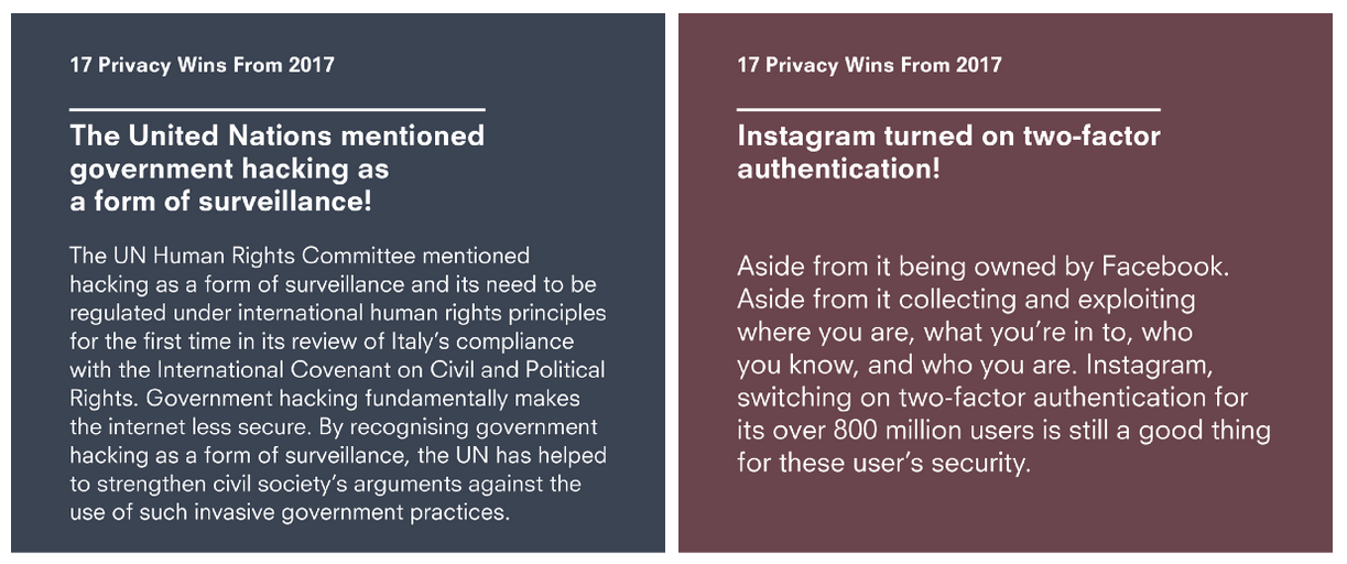 To celebrate the hard work of privacy advocates around the world, we highlight 17 #PrivacyWins from 2017!