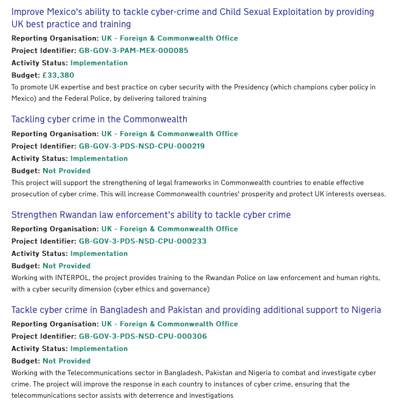 Individual EU countries also publish general information about security cooperation with foreign countries, most commonly on aid transparency platforms. The UK’s Conflict, Stabilisation and Security Fund (CSSF), for example, worth £1 billion funds projects in over 40 countries, including the training of police and armed forces in foreign countries, for example training Jordan’s “internal security agencies to use investigative [counter-terrorism] policing tools”. A general description of some of the projects is available on the UK government website. A joint parliamentary committee recently concluded that the level of secrecy of how the fund operates meant that it could not “provide parliamentary accountability for taxpayers’ money spent via the CSSF.”