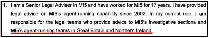 According to MI5, “[a]gent operations are run by specially trained officers known as “agent handlers,” and can continue for long periods, sometimes for many years.” Unlike the “agents,” “agent handlers” are MI5 staff. In running agent operations, MI5 “agent handlers” purports to authorise its “agents” to commit crimes: in the government’s words, agent handlers are agreeing to agents’ participation in crime.