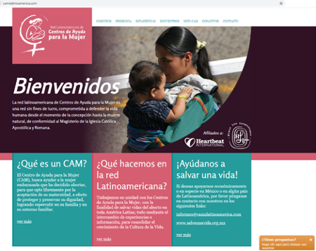 As the above screenshot shows, the website (the turquoise square at the far left) says that “The Help Centre for Women (CAM), seeks to help pregnant women who have decided to abort, to freely choose to accept their motherhood, in order to protect and preserve their dignity, achieving impact on their family and their familiar surroundings.”- The second square says: “We work in unity with the Aid Centres for Women, in order to save lives from abortion throughout Latin America; all through the exchange of experiences and information, to consolidate the growth of the Culture of Life.”