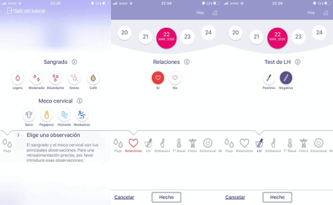 Some examples of data collected by the FEMM app: sexual activity, emotional status, temperature, and more – provided to PI by Paz Peña.