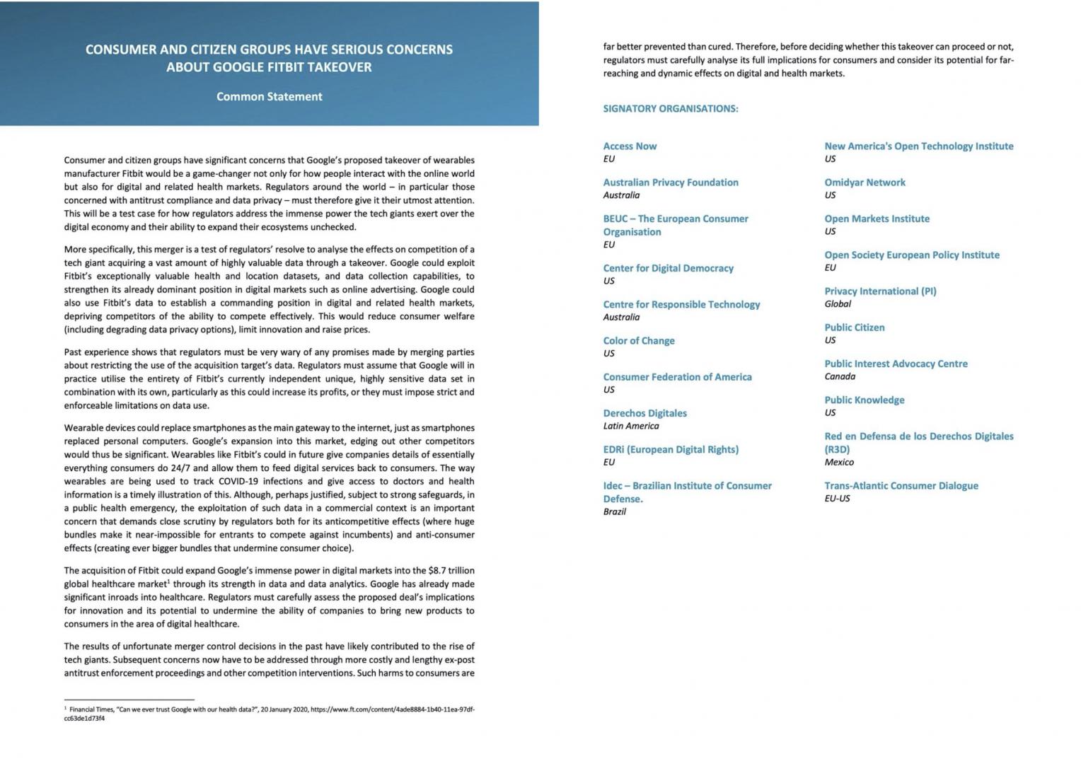 The impact of our public campaign against the proposed Google/Fitbit merger