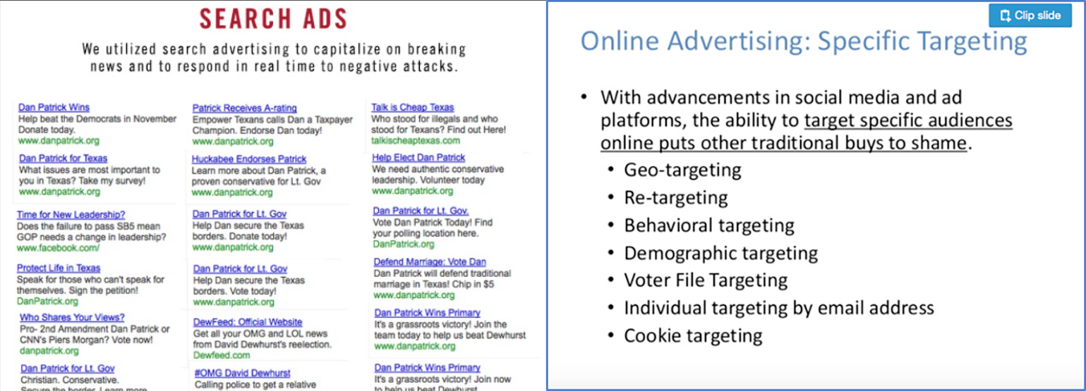 [Targeted advertising and Google Adwords are central to Harris Media’s campaigns.]