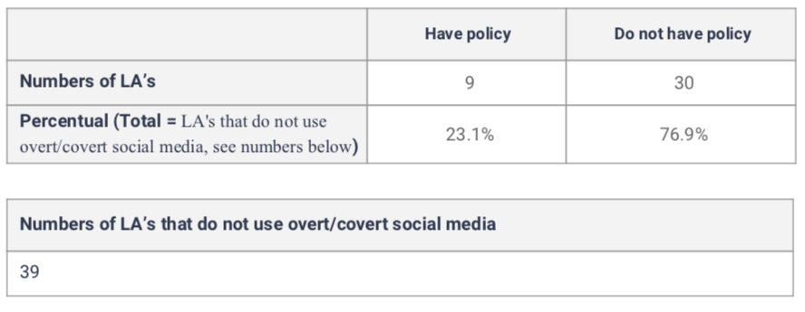 It is interesting that despite not using overt social media monitoring, local authorities have nevertheless introduced a policy on using this form of surveillance.