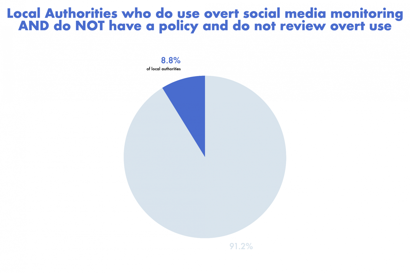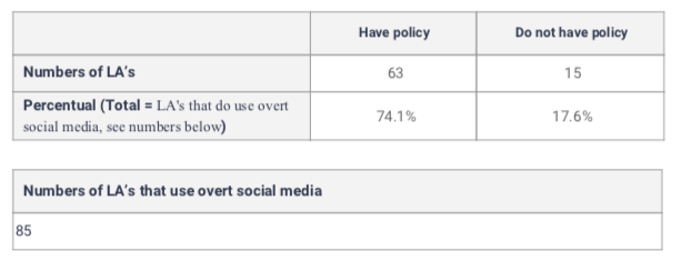 This informed key finding: A significant number of local authorities are now using 'overt' social media monitoring and this substantially out-paces the use of 'covert' social media monitoring.